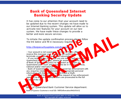 - Scam Letters (surat yang berisi penipuan) yang menyakinkan penerimanya untuk memberikan informasi personal dan informasi kartu kredit yang seakan dikirim oleh: PayPal, IRS and AOL.